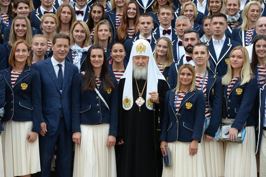 Перед отъездом в Рио нашу команду принял президент, а затем в Успенском соборе Кремля Патриарх Московский и Всея Руси Кирилл призвал спортсменов сделать то, «…что никогда наши спортсмены не делали ни на одних Олимпийских играх», «выигрывать с высоко поднятой головой». «Чем больше испытаний – тем больше силы. Сталь закаляется в огне. Страна закаляется в испытаниях. Народ становится сильным, когда есть с чем бороться и для чего бороться», – отметил он.