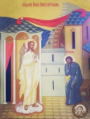 Праздничная литургия в этот день совершалась в Свято-Ильинском храме, именуемом еще «храмом на жерновах», то есть на мельнице, где подвизался преп. Силуан Афонский и где ему явился Сам Господь.