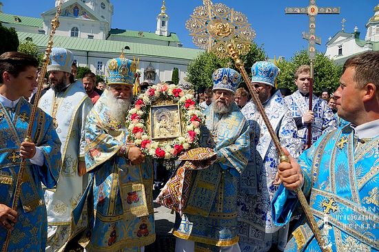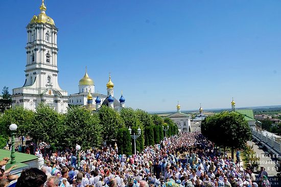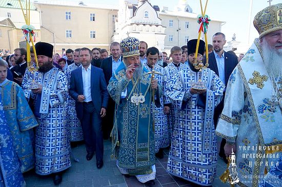 По завершении торжественного богослужения состоялся крестный ход с Почаевской иконой Божией Матери в Успенский собор Лавры, где был совершен праздничный молебен.