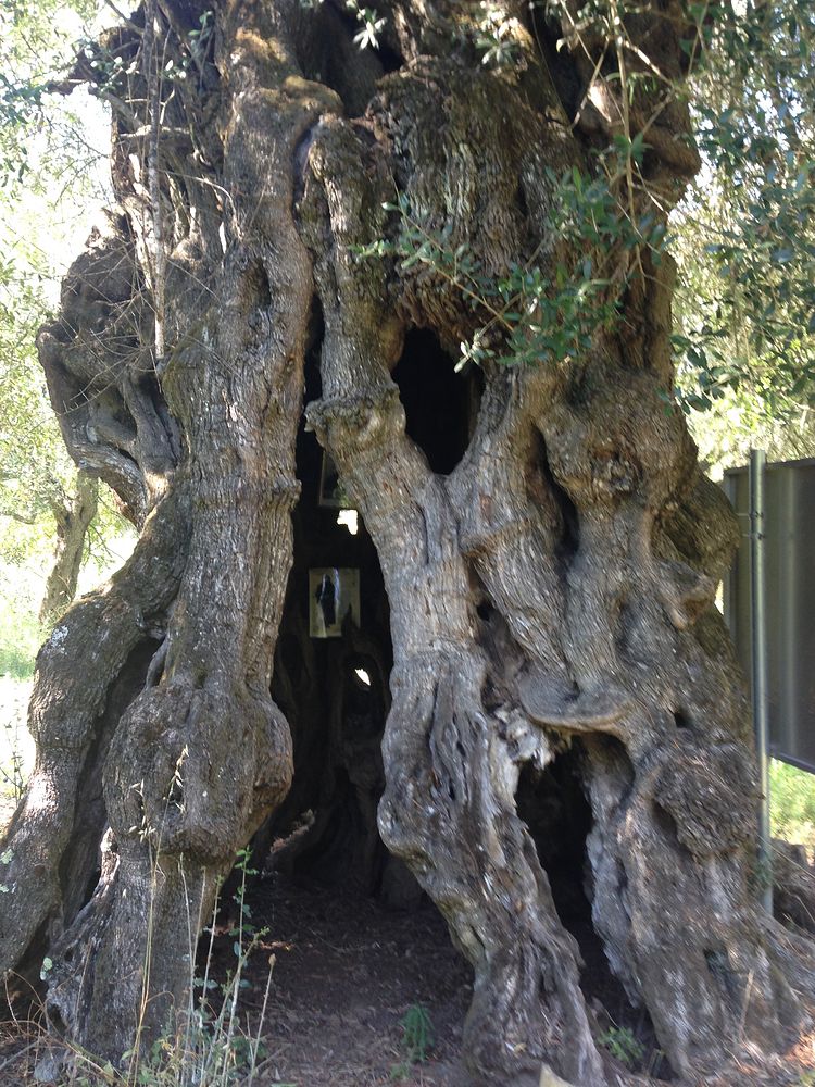 Ее пристанищем на время изгнания стало дупло древней оливы. Никому из людей не дано знать, какие нападки от нечистого пришлось ей претерпеть в этом месте и какое утешение она получала от Господа и Пресвятой Богородицы. Но эта олива до сих пор хранит тепло ее стоп. Лампада, которую она зажигала в дупле, не гасла даже во время самых сильных ливней и ураганов. Рассказывают, что во время непогоды, когда в храме то и дело лампады гасли от ветра, лампада Анастасии освещала пространство вокруг дупла, и это вызывало зависть. Однажды человек, прислуживающий в храме, от ярости, обуявшей его, раздробил лампаду Анастасии. Вскоре кобыла обидчика сбросила с себя его жену и дочь. Семья раскаялась, они приходили просить прощения у старицы.