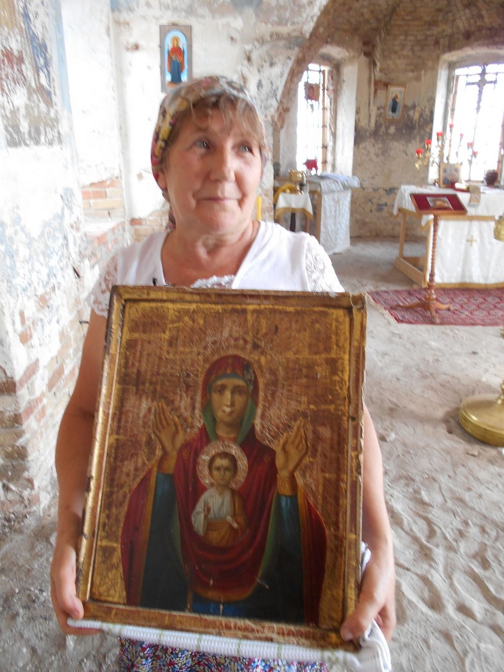 — Моя мама перед смертью спрашивала: неужели не восстановят? Она очень хотела быть похороненной здесь, рядом со своими родителями,— рассказывает Валентина Щебетина. Она приехала на службу из Хвалынска и не одна: привезла с собой старую икону Божией Матери «Знамение»: