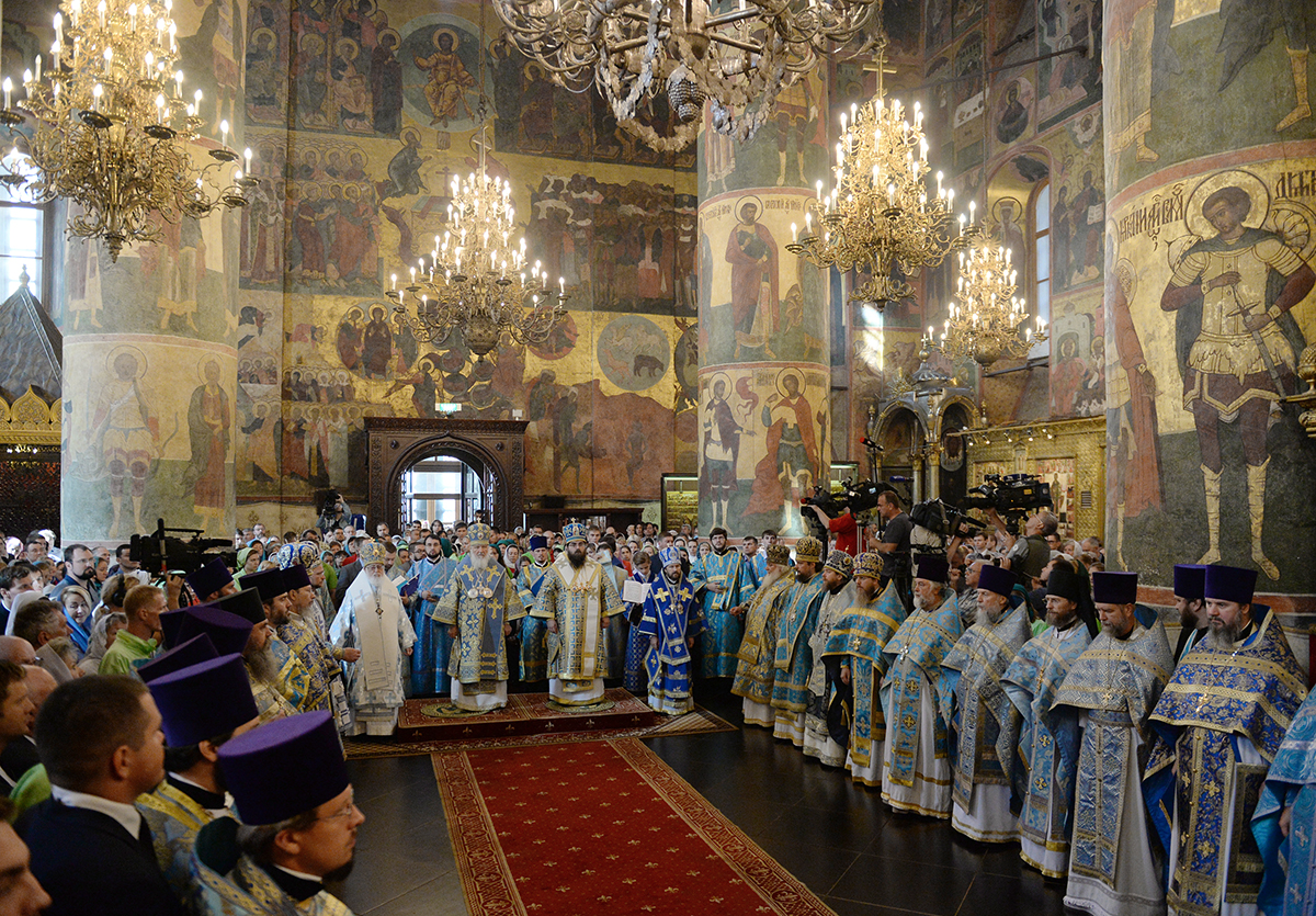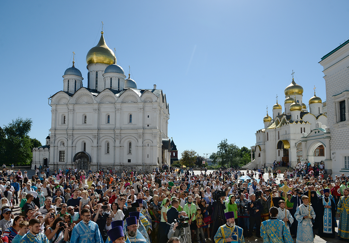 В завершение празднования состоялся торжественный крестный ход вокруг Успенского собора Московского Кремля.