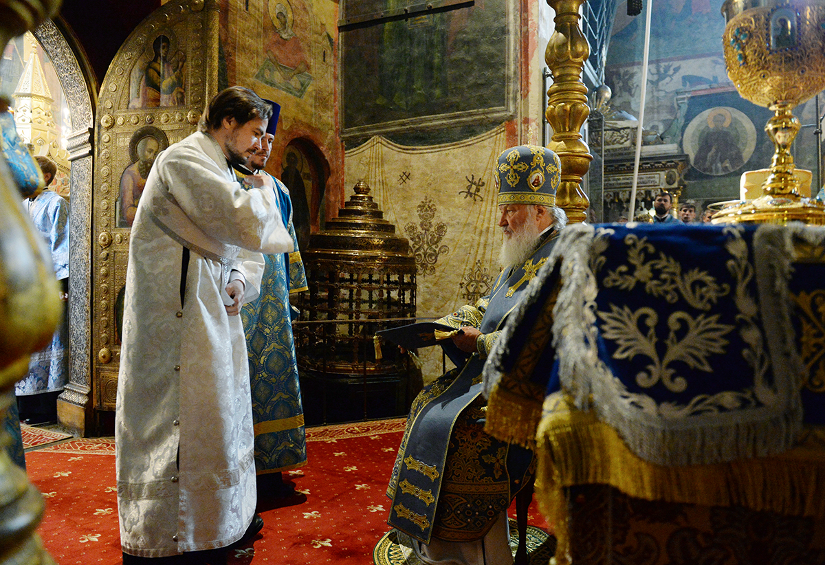 После сугубой ектении Предстоятель Русской Православной Церкви совершил молитву о мире на Украине.