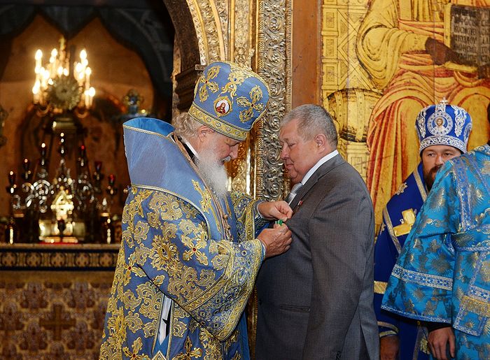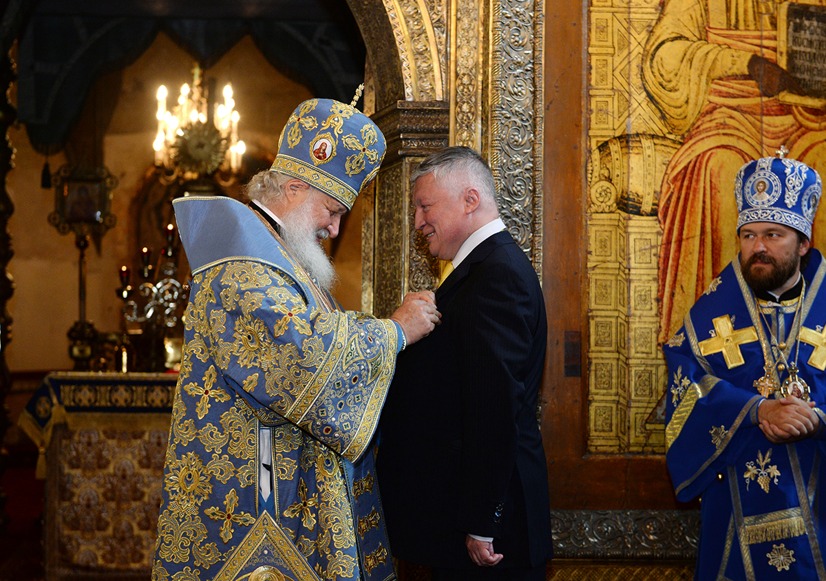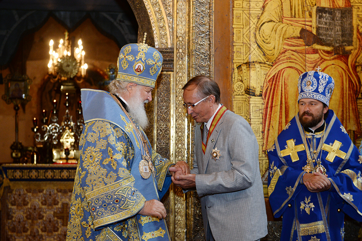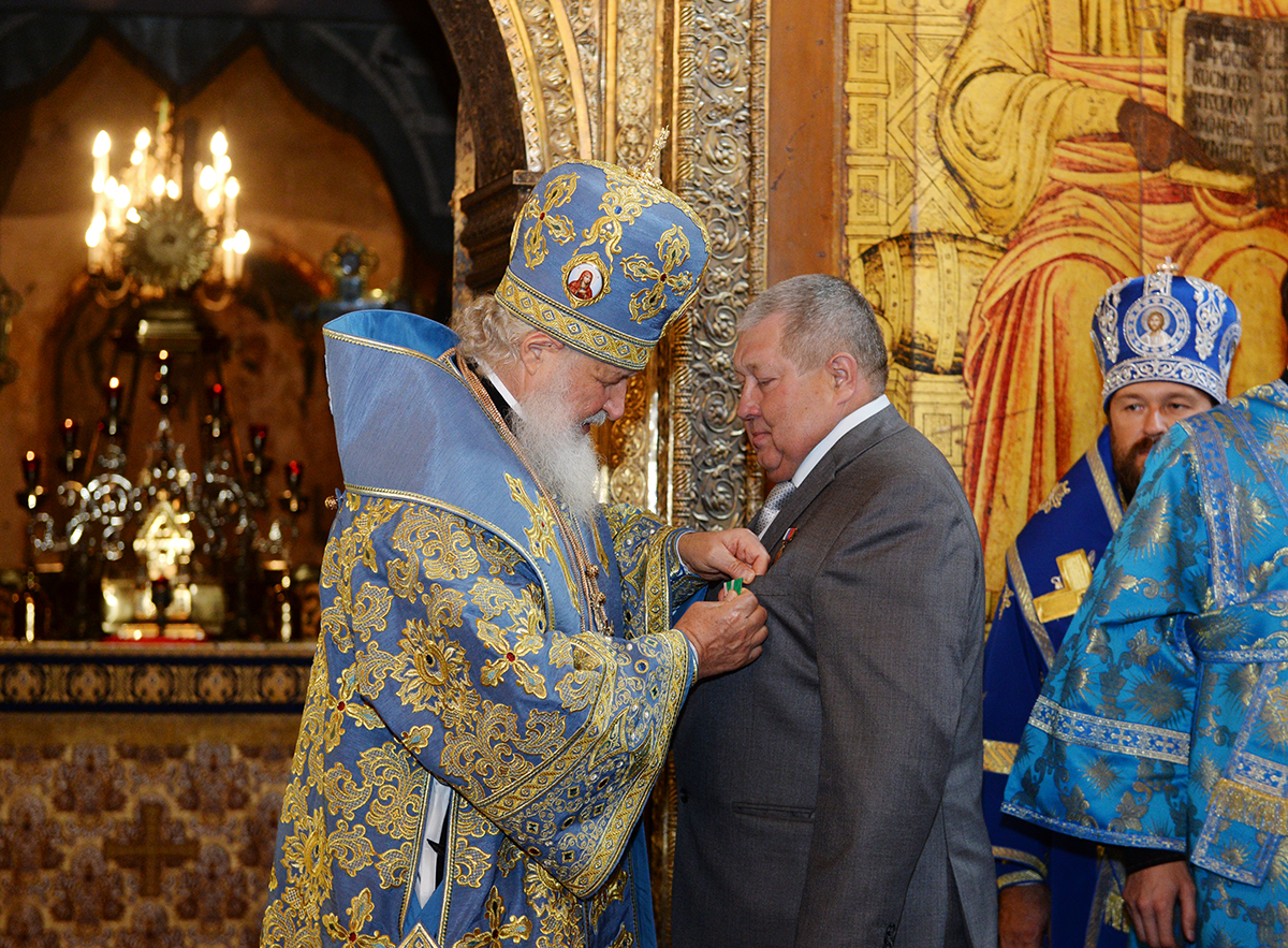 После этого Святейший Патриарх Московский и всея Руси Кирилл вручил ордена и медали ряду лиц, удостоенных высоких наград за свое усердное служение на благо государства и Церкви.