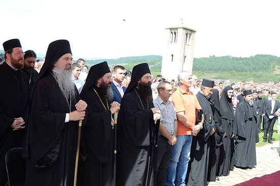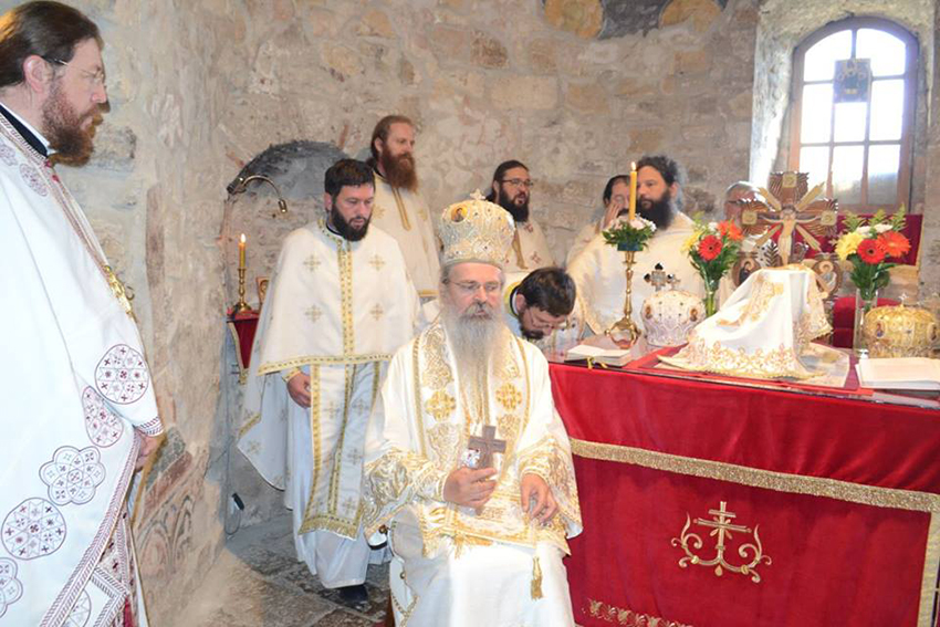 Пред мноштвом народа свету Литургију служио је Његово Преосвештенство Епископ жички господин Јустин уз саслужење Његовог Преосвештенства Епископа тимочког господина Илариона, Његовог Преосвештенства Епшископа рашко-призренског господина Теодосија и великог броја свештенослужитеља из неколико епархија СПЦ. Велику част домаћинима учинило је учешће у Литургији и Високопреподобних архимандрита Тихона (Ракићевића) игумана свете студеничке обитељи и Никифора (Миловића) секретара Епархије будимљанско-никшићке.