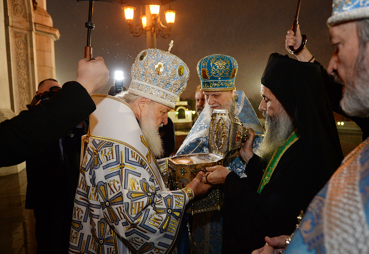 — Нет, ничего такого нет, мощи пребывают в своем обычном ковчеге, но его сопровождают монахи со Святой Горы и представители служб безопасности, они следят за всем происходящим возле мощей.