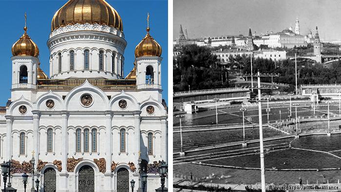 The Soviets blew up Moscow's once majestic Cathedral of Christ the Savior. Now, its golden cupolas shine again in Moscow. Along the way, it was a site for prestigious communist projects - like a massive swimming pool.