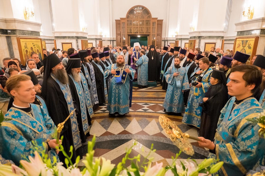 Receiving the miraculous icon from the hands of Bishop Nicholas, Metropolitan German made the sign of the cross with it in all four directions. As the troparion to the icon was sung and under the peal of bells, a procession brought the icon to the Cathedral of the Nativity of the Most-Holy Mother of God. It was placed on an analogion in the middle of the church and adorned with a wreath of white flowers.