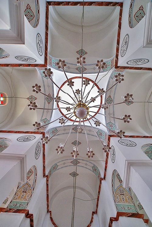 At first sight, the interior of the church looks like an ordinary mosque. Only the right-sided positioning of the mihrab indicates the Christian origin of the building. On a closer look, the trilobated sanctuary with its three independent domes becomes evident, and so does the cross formed by the four crossed arches which support the Byzantine dome.