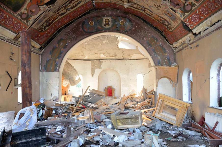 – Оче Георгије Ваш храм је срушен у артиљеријском нападу. Када и како се то десило?