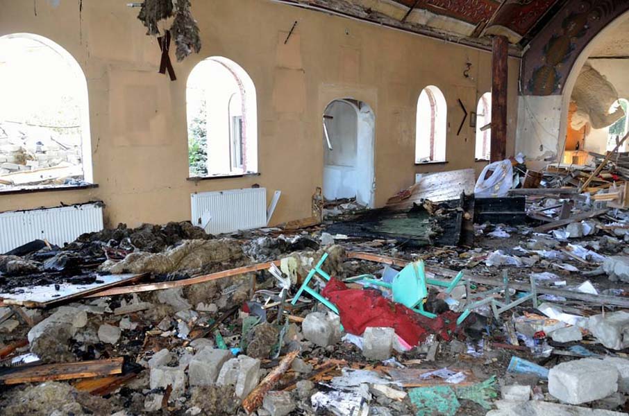 Експлозија је била толико моћна да су се делови нашег храма разлетели отприлике на 300 метара, али не у пречнику. Када ракета долети, све лети у правцу кретања те ракете. Уназад мало шта лети. И ето, све је полетело напред на 300 метара.