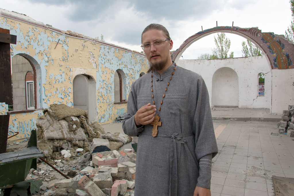 А 20 дана пре него што су срушили наш храм, погинуо је помоћник црквењака нашег храма, Вјачеслав. У то време су почеле борбе у суседном граду – Шахтјорску. Вјачеслав је имао минибус и возио је цивиле подаље од рата до руске границе, они су потом пешке прелазили границу и одлазили куда су хтели, јер су их са руске стране чекали аутобуси.