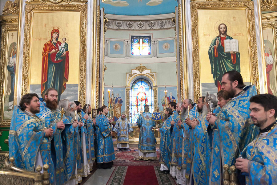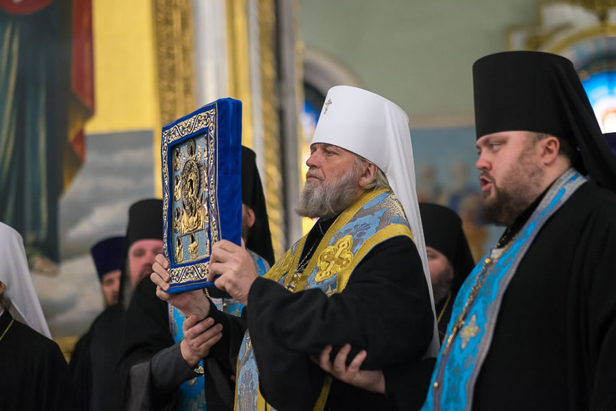 On October 4, 2016, the Apodosis of the Elevation of the Life-Giving Cross of the Lord, five archpastors of the Russian Orthodox Church and the Russian Orthodox Church Outside of Russia celebrated Divine Liturgy in the presence of the Kursk Root Icon of the Mother of God "of the Sign” at Znamensky Cathedral in the city of Kursk, Russia.