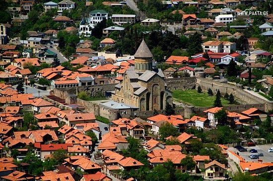 Svetitskhoveli Cathedral, known as the burial site of Christ's mantle, is a Georgian Orthodox cathedral located in the historical town of Mtskheta, 20km northwest of the nation's capital Tbilisi.
