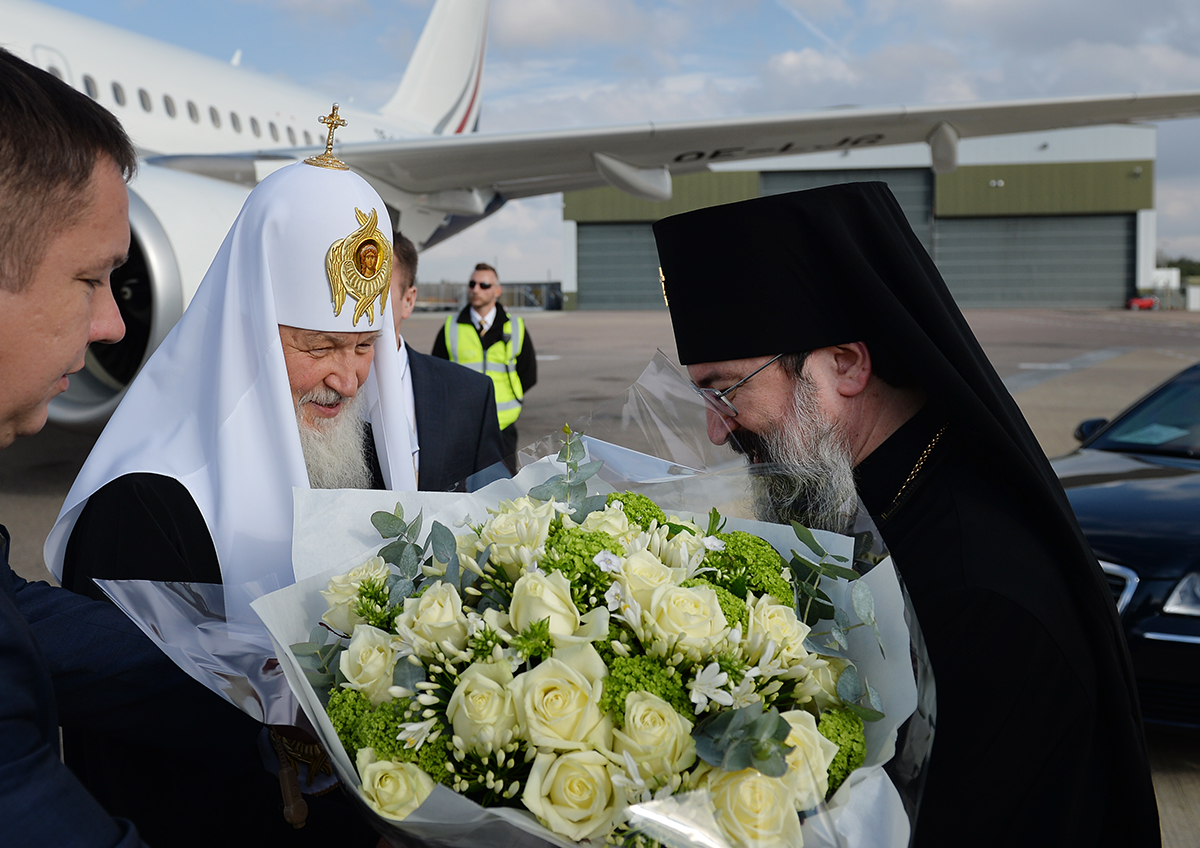 В числе встречавших Предстоятеля Русской Православной Церкви в аэропорту были архиепископ Сурожский Елисей и представители духовенства Сурожской епархии, Чрезвычайный и Полномочный посол Российской Федерации в Великобритании А.В. Яковенко.