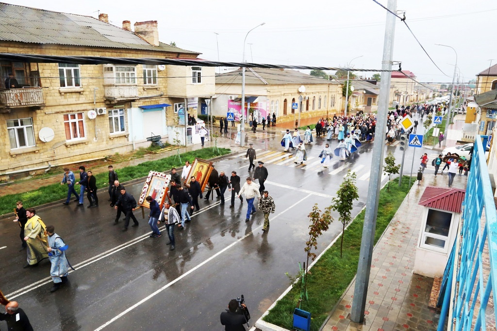 По окончании богослужения архипастырь возглавил крестный ход от храма до площади Свободы (бывшей Церковной) — главной площади города, где располагается здание мэрии Дербента. До 1938 года здесь находился собор в честь святого великомученика Георгия Победоносца. В последний раз крестный ход в Дербенте проводился незадолго до Октябрьской революции 1917 года.