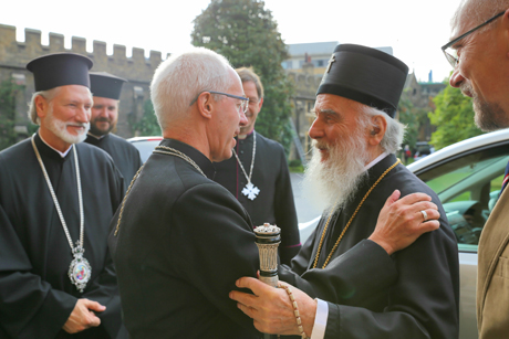 The Archbishop of Canterbury Justin Welby welcomes Patriarch Irinej to Lambeth Palace. Photo Credit: Lambeth Palace