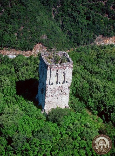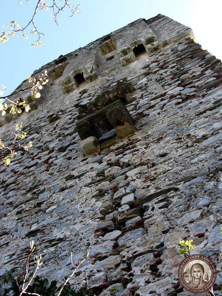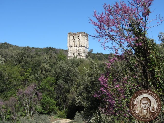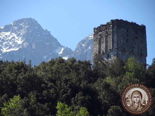 «Афон, как магнитная сила, в конце десятого века привлек к себе латинских монахов не из одного Рима, а и из итальянского города Амальфи, расположенного на берегу Тирренского моря, ниже столичного города Неаполя. Пришедши на Святую Гору до 980 года, амальфинские рабы Божии (не упомянутые в уставе Цимисхия 971 года) купили себе место на правой стороне речки, вытекающей из-под большого и малого Афона с северной стороны этой горы, и тут почти у моря на красивом холме построили себе монастырь во имя Пресвятой Девы Марии, от которого остались поныне только башни и развалины водопровода».
