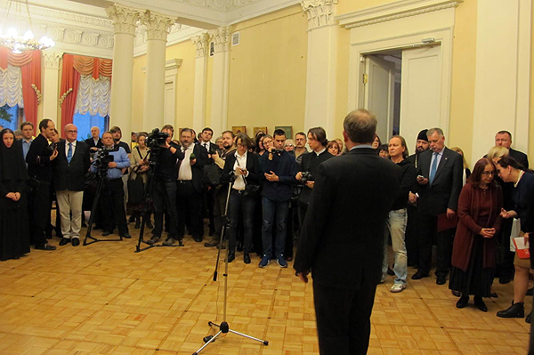 Изложбу је отворио директор Института. На отварању су, поред директора, говорили Преосвећени Епископ моравички г. Антоније, секретар амбасаде Србије у Руској Федерацији гђа Снежана Павловић, представник Градске управе Петрограда за међународну културну сарадњу, представник Карић фондације гђа Мила Поповић Живанчевић и други.