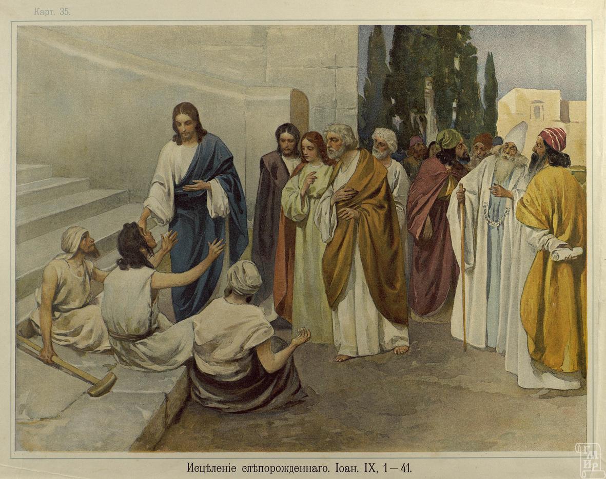 При чтении евангельского рассказа о слепорожденном может возникнуть мысль о жестокости Бога, можно подумать, что Он попустил человеку родиться слепым ради самоутверждения. Но Богу это не нужно. Ему нужно только одно — помочь человеку избежать вечной смерти. Слепорожденный человек, пережив исцеление, так полно утвердился в Боге и в вере во Христа, что стал Его бесстрашным благовестником (см. Ин. 9, 30—33) и смог наследовать спасение, которое принес воплотившийся Сын Божий — Тот Посредник, Которого искал Иов.