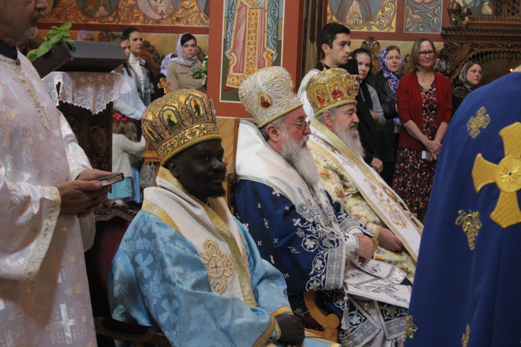 Пред почетак Литургије извршено је рукопроизвођење чтеца Томе Колиандра из цркве Светих Константина и Јелене у Галвестону у чин ипођакона. До Херувимске песме ипођакон је стајао испред Христове иконе а по Великом входу, у ком је узео учешћа, испред иконе Пресвете Богородице. Након великог входа ипођакон Тома је рукоположен у чин ђакона.