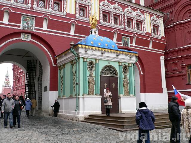 It arrived in Moscow on May 19, 1669, and was placed in the Neglineny tower at the same city gates, protected by an awning. This was the beginning of the Iveron chapel in Moscow. These were the gates through which the Russian Tsars would perform their solemn entry into Red Square, and thus they were also called the “Triumphal Gates”.