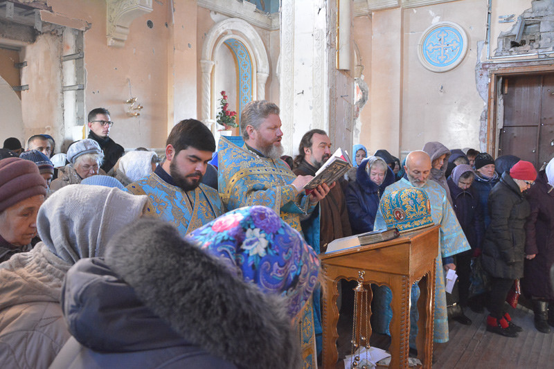 Божественную литургию, которая началась в 9:00, возглавил Высокопреосвященнейший Варнава, архиепископ Макеевский. Викарию Донецкой епархии сослужили благочинные Преображенского округа протоиерей Петр Устименко, Троицкого округа протоиерей Владимир Леонов, Николаевского округа протоиерей Алексей Быстров, клирики храмов города Донецка.