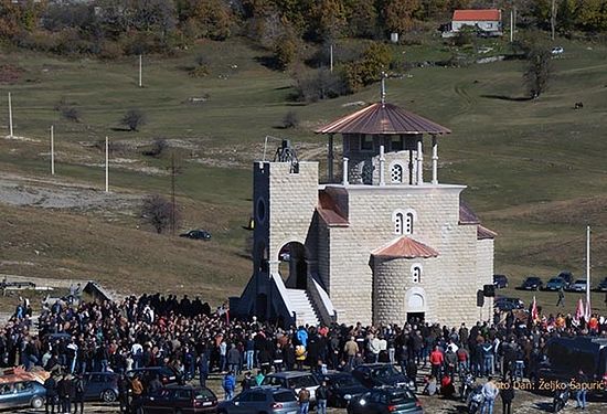 Новоосвештани храм подигнут је у спомен на славне јунаке Вучедолске битке, који су крв своју проливали за Крст часни и слободу златну, за ослобођење и уједињење нашег народа, па је током Литургије одслужен помен краљу Николи и ратницима који су извојевали знамениту побједу на Вучјем долу. Овом свечаношћу, у организацији Епархија будимљанско-никшићке и захумско-херцеговачке, обиљежена је 140-годишњица славне Вучедолске битке.