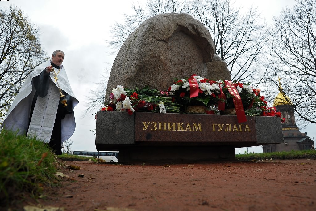 30 октября в Санкт-Петербурге прошла акция «Молитва памяти». У Соловецкого камня на Троицкой площади с 12.00 до 20.00 каждый желающий мог прочитать страницу из мартиролога, назвать имена пострадавших родных и близких.
