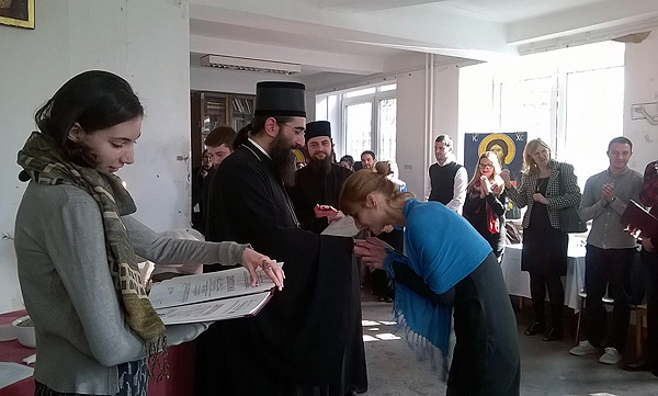 Дипломираним студентима и свршеним студентима мастер студија владика Арсеније је уручио дипломе акредитоване Академије Српске Православне Цркве за рестаурацију и консервацију.