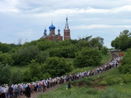 In our time, the tradition of the great procession, which begins a week before the feastday of the Korobeinikovo icon, is becoming more widely-known. Believers prayerfully process throughout the Siberian lands with icon and banners, sleep in fields and villages under the starry sky, and process into the village of Korobeinikovo, where they meet thousands more believers who arrive from various cities of Siberia and central Russia. Festal services continue all evening, night, and day until lunchtime. Thousands of believers, whom the church cannot accommodate, confess and commune under the starry sky. After finishing the night Liturgy, early in the morning another altar is brought out to serve the second Liturgy at the night’s end.