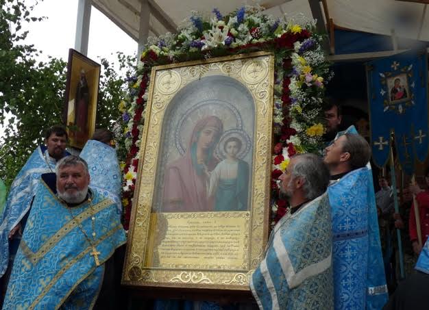 In 1936 the last priest of the church of the Kazan Mother of God, Fr. Roman, was arrested, and in 1938 the church was destroyed and converted into a granary. Believers were able to save some of the most revered icons, but the atheists made an example of throwing the patronal icon of the Mother of God to the ground, cattle and people walking on it. Then the icon, face turned upwards, was used in place of floor boards in the church-turned-granary, and those entering trampled upon it with their feet. Believers bewailed the desecrated holy object, but were afraid to approach it as the atheists vigilantly ensured that the icon remained in the ground to be profaned daily.