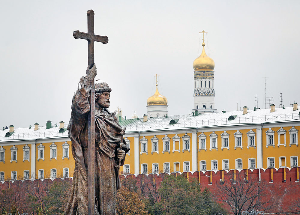 И вот обращение к святому Владимиру, святому и культурному герою, задает важный созидательный вектор – это святой, прославляемый за его духовную и просветительскую миссию, и недаром на памятнике в поднятой руке он держит крест, а не меч. Его подвиг не в том, что он проливал кровь, кого-то бил, кого-то сокрушал – он запомнился не этим. Он запомнился тем, что принес своему народу истинную веру – и вместе с ней, культуру и просвещение.