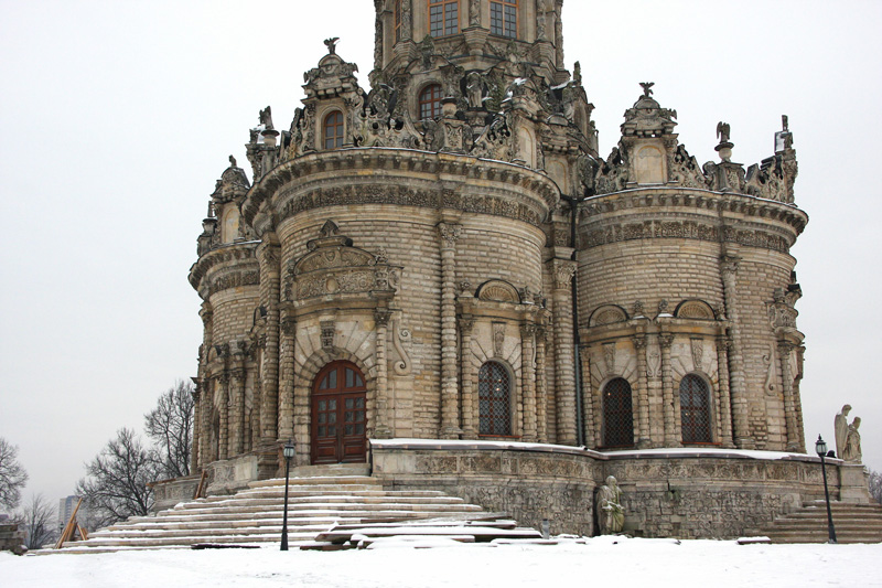 Удивительная архитектура являет собой яркий образец европейского барокко XVII века и от такого разнообразия форм у посетителей поначалу разбегаются глаза, а затем возникает ощущение, что перед ними скорее католический храм, но никак не русская сельская церковь.