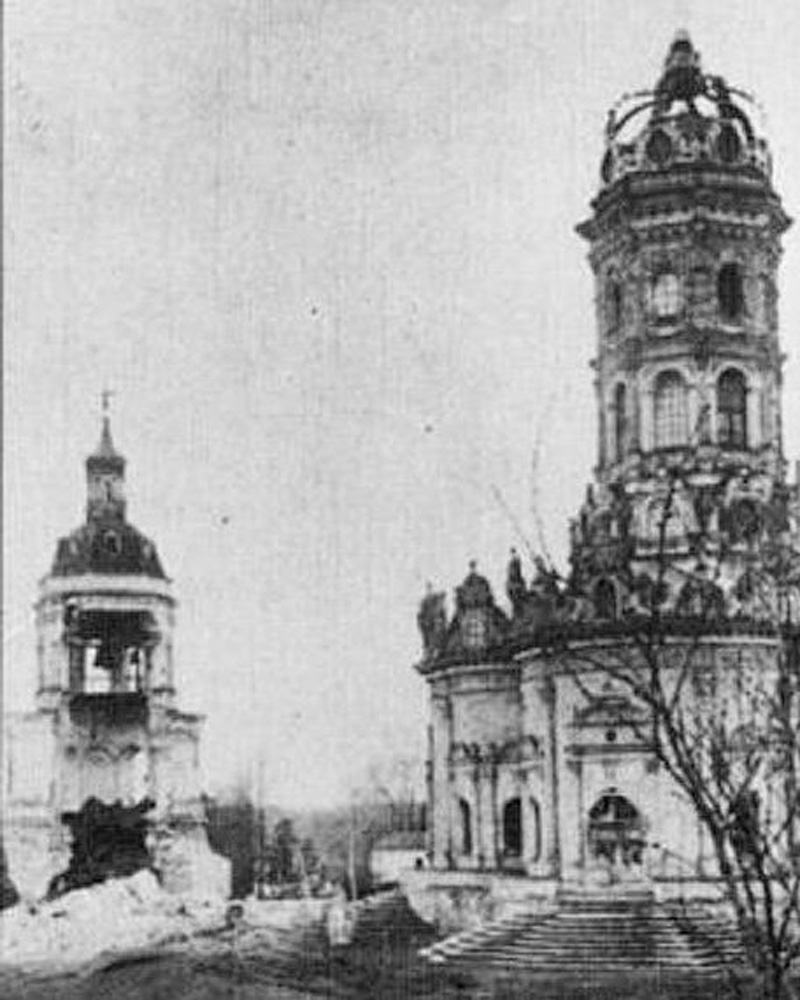 В сентябре 1931 года была взорвана колокольня и находившаяся в ней церковь Адриана и Наталии. Небольшая звонница была построена позднее главного храма - в середине XVIII века, и сейчас мы можем ее увидеть только на старых фотографиях.
