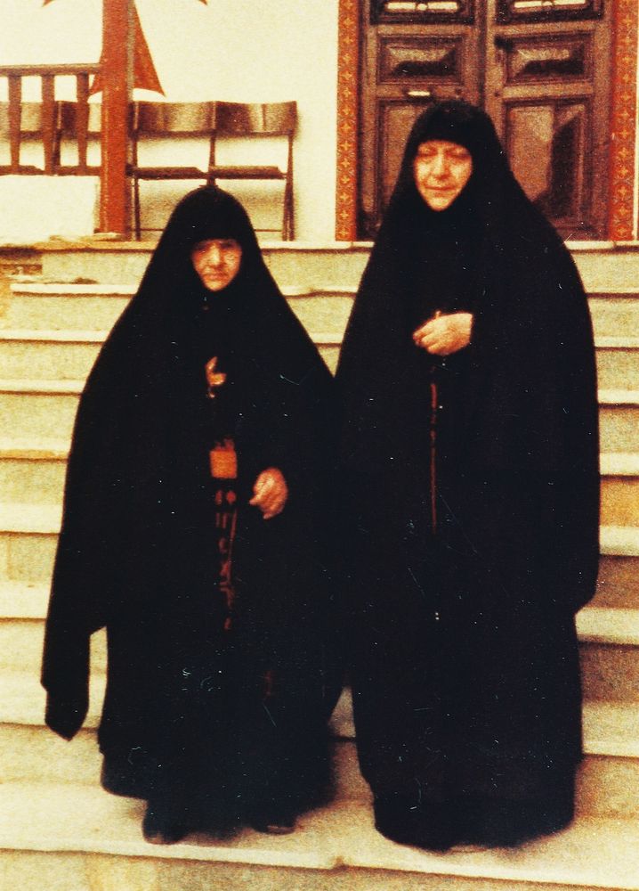 Soon after the tonsure of his mother, Elder Ephraim tonsured Maria who he named Macrina—she became the abbess of the monastery in Portaria. Gerontissa Theophano was her sponsor in the tonsure, and therefore Matushka Macrina considered her her gerontissa and spiritual mother. For many years in Portaria they shared one cell and continued in joint prayerful podvigs, as they had done in the world, in Victoria’s home, locking themselves at night in the kitchen, to spend hours kneeling in collective prayer. They were great women of prayer. The locals bear witness: they saw how two pillars of fire would rise from the monastery at night to Heaven—the prayers of Gerontissas Theophano and Macrina.