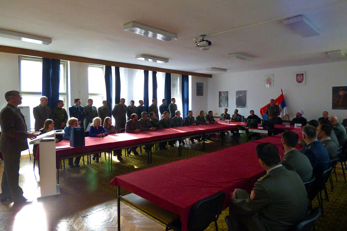 Начелник Одељења за веру у Управи за људске ресурсе пуковник др Саша Милутиновић истакао је да се Дан верске службе слави у сећaње на 12. новембар 1839. године, када су доношењем првог војног закона уређени рад и деловање војних свештеника у Војсци Кнежевине Србије.
