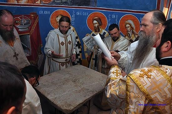 "Освештасмо обновљени храм Светих архистратига Божјих Михаила и Гаврила и осталих небеских сила бестјелесних. Призвасмо Божји благослов на обновљену светињу, обукосмо је у Божју благодат, у Божју свјетлост, освештасмо Свети престо Светих архистратига Божјих, који овдје штите овај свети храм, јер као што небеске силе на Небесима увијек прослављају име Божје и славослове га трисветим гласовима Свјат, Свјат, Свјат, Господ Саваот испол небо и земља слави Твоеја, тако се и ми овом светом службом њима придружујемо. Анђели небески који се причешћују вјечне свјетлости Божје и стоје непрестано пред престолом Божјим, силазе и доносе нам благодат и огањ са Неба, огањ чисте свете православне вјере, огањ који подиже наша срца и наше мисли на славословље Бога живога“, рекао је Његово Преосвештенство.