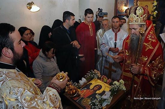 "Ви сте у овим временима која су тешка и бременита искушењима предузели свето дјело да обновите ову светињу, коју су ваши преци подигли прије више од сто година. Ево, хвала Богу, у обновљеној светињи прву службу савршисмо пошто смо је освештали, Богу посветили, изнова убијелили нашим трудом, нашим молитвама и изливањем светог мира на свети престо“, казао је Преосвећени Епископ будимљанско-никшићки Г. Јоаникије.