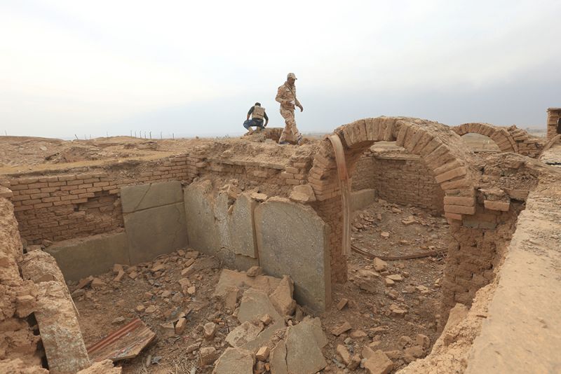 A member of Iraqi army walks at the remains of wall panels and colossal statues of winged bulls, destroyed by Islamic State militants in the Assyrian city of Nimrud eastern bank of the Tigris River, south of Mosul, Iraq, November 16, 2016. (PHOTO: REUTERS/ARI JALAL)