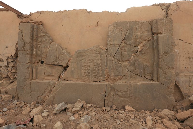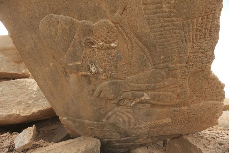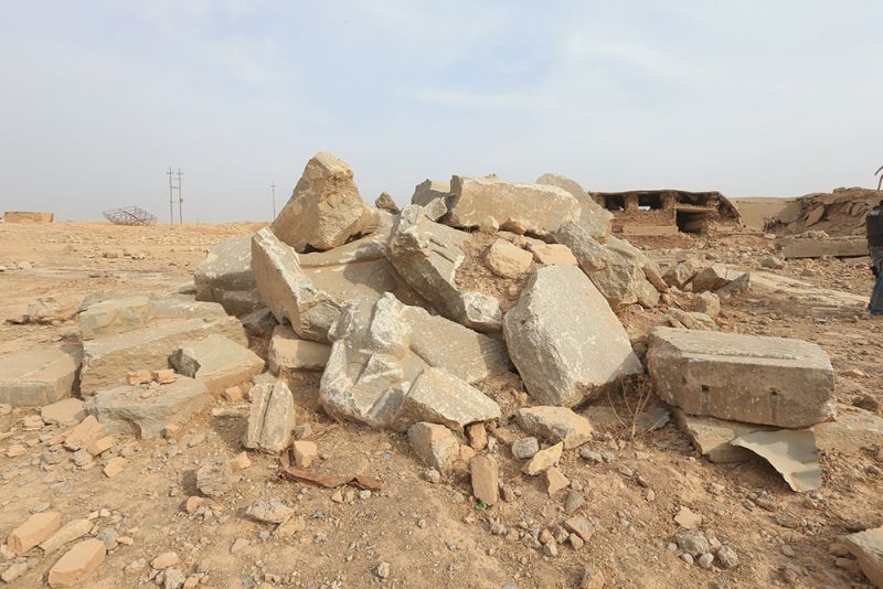 Remains of wall panels and colossal statues of winged bulls, destroyed by Islamic State militants are seen in the Assyrian city of Nimrud eastern bank of the Tigris River, south of Mosul. (PHOTO: REUTERS/ARI JALAL)