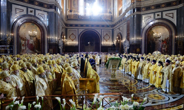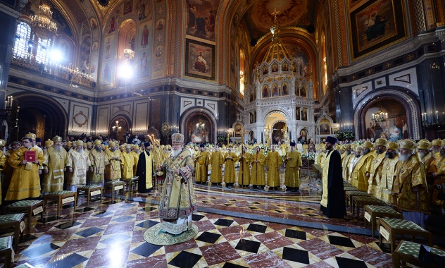 На Литургији се молио огроман број верних. Певали су хорови: Патријаршијски хор при цркви Христа Спаситеља (диригент И. Б. Толкачев), братијни хор Светотројицке Сергијеве лавре (диригент архимандрит Глеб Кожевников), здружени дечји хор недељних и црквених музичких школа Москве и Подмосковља под управом Варваре Волкове.