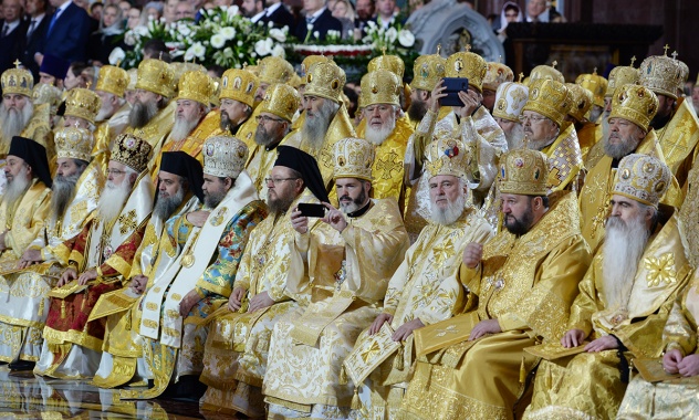 Богослужењем су началствовали: Блажењејши Папа и Патријарх александријски Теодор II, Блажењејши Патријарх Светога града Јерусалима и све Палестине Теофил III, Свјатјејши Патријарх московски и све Русије Кирил, Свјатјејши Патријарх српски, Архиепископ пећки и Митрополит београдско-карловачки Иринеј, Свјатјејши и Блажењејши Католикос-Патријарх све Грузије Илија II, Блажењејши Архиепископ Нове Јустинијане и свега Кипра Хризостом II, Блажењејши Архиепископ тирански и све Албаније Анастасије, Блажењејши Митрополит варшавски и све Пољске Сава, Блажењејши Митрополит Чешких земаља и Словачке Растислав, Блажењејши Архиепископ вашингтонски и Митрополит све Аамрике и Канаде Тихон.