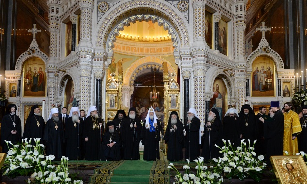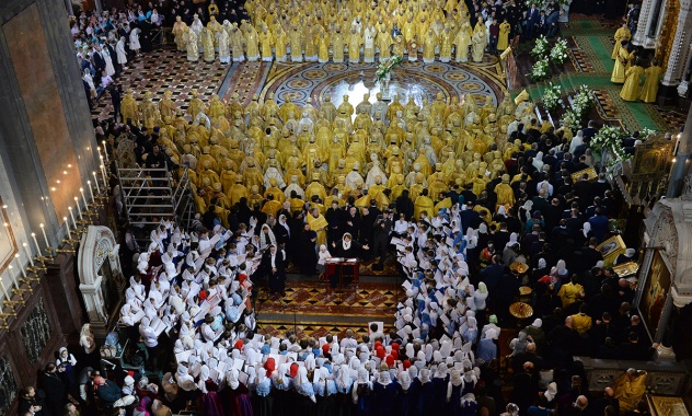 Саслуживао је сабор архијереја Руске Православне Цркве, затим представници помесних православних Цркава при Московском патријарашком престолу, старешине синодалних установа и заграничних испостава Московске Патријаршшије, намесници и настојатељи мушких манастира ове Цркве, чланови делегација помесних православних Цркава у свештеном чину, чланови Епархијског савета града Москве, свештенство Московске епархије.