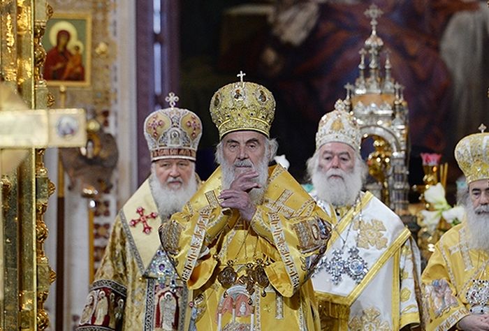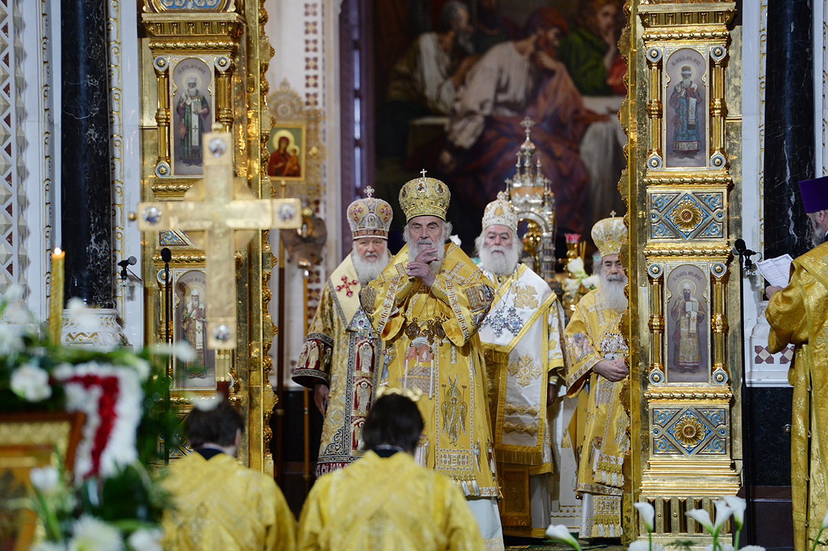 У наставку свог говора Свјатејши патријарх Иринеј је истакао: «Ми народе Московског патријархата доживљавамо као јединствену духовну целину, као Свету Русију... У историји често видимо да непријатељ људског рода видећи чврстину православаца у вери покушава да расече Христово тело помоћу безумља расколника. И нашем срцу је сад тешко и болно да види како у Украјини, у Крстионици Кијевског Крштења, расколници, бестидни синови погибељи, покушавају да одвоје паству од московских патријараха, њених вишевековних духовних вођа, да запоседну и оскрнаве првославне храмове. Безбожници и расколници које је залудео кнез овог века покренули су у Украјини братоубиствени рат како би крв пала међу браћом и како би смрт ушла у многе домове. Страшно је гледати фотографије храмова у рушевинама, уплакану децу и избеглице. Српски народ је доживео сличну трагедију и оно што сад видимо у Украјини изазива дубоку тугу у нама. Они који помажу расколницима су људи безакоња који се одвајају од јединства вере, то су душевни људи који немају духа. Али се сећамо и речи великог апостола Павла: њихов крај ће бити по делима њиховим (2 Кор. 11: 15). А бродом руског Православља ће на многаја и благаја љета управљати чврста рука Ваше Светости и Ваших богомудрих помоћника, и величина духа православног народа Свете Русиеј победиће деловање сила таме.»
