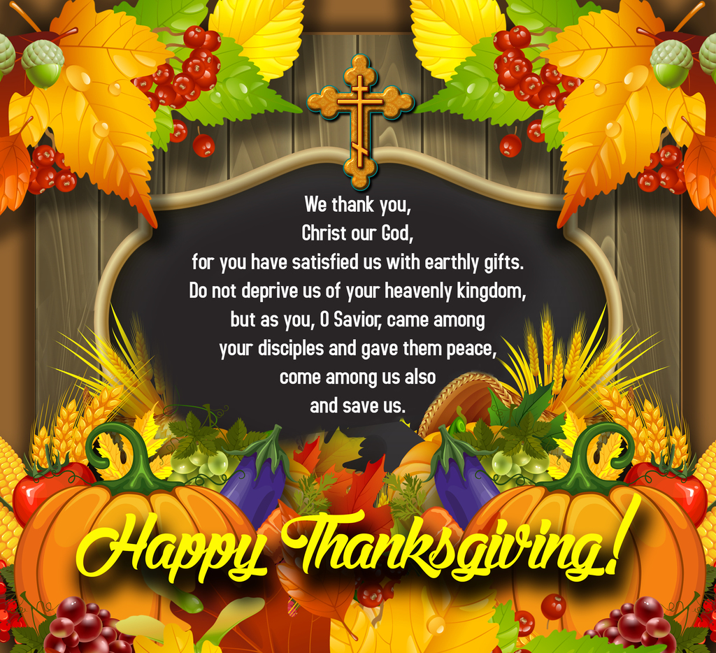 As you gather on Thanksgiving Day, wherever it is you gather and with whomever you gather, we hope you have a great day! We hope you will enjoy the traditions of the day. But be sure to remember that for us – Orthodox Christians, Thanksgiving is more than a Thursday in November. It’s more than enjoying turkey, pumpkin pie and football. It is about giving thanks and being a blessing for those around us.