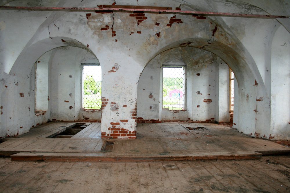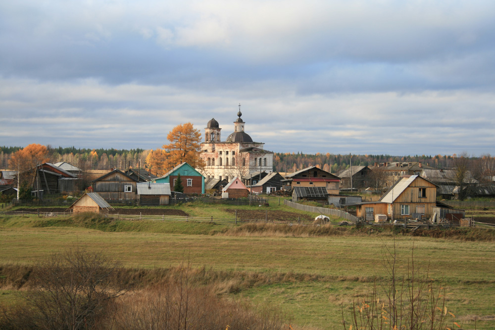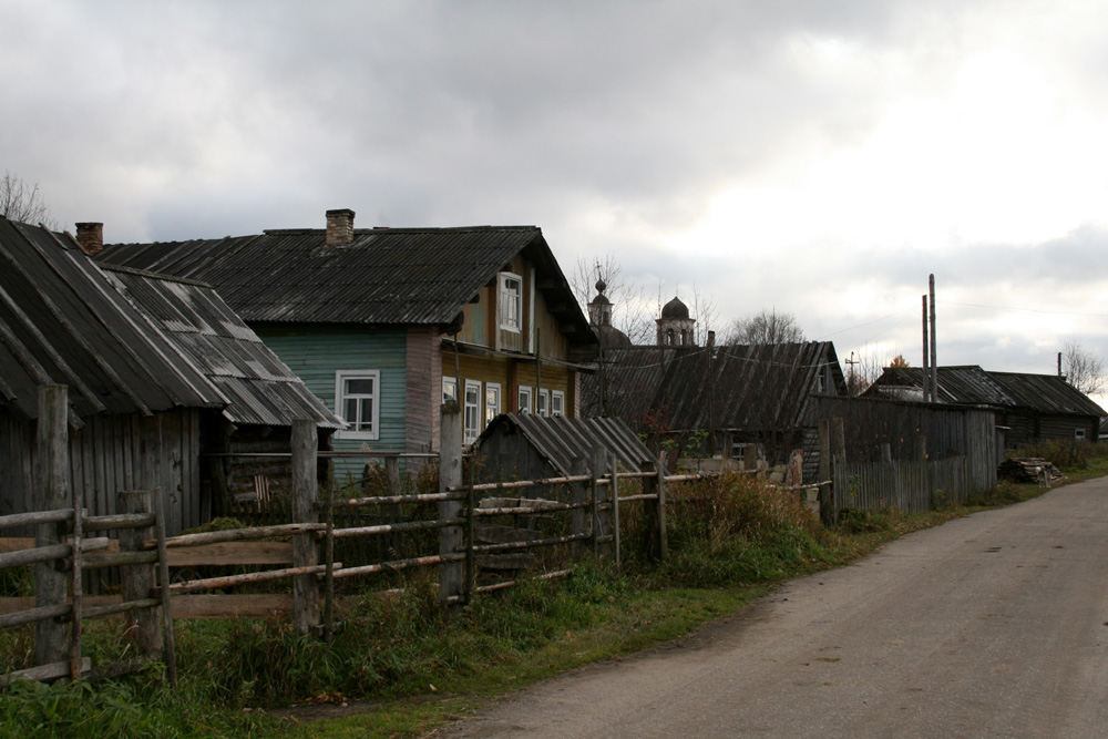 Старинная церковь оказалась без окон, с дверями, распахнутыми настежь. Пустота образовалась и рядом с разрушенным храмом — мы увидели только заколоченные, умирающие дома.