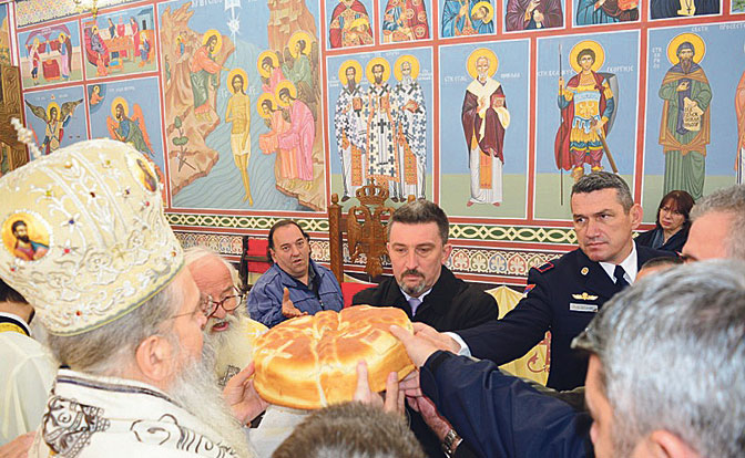 После сечења славског колача, уз пригодну музику црквеног хора, владика је поклонио КПЗ-у Ниш нову Монографију о задужбинама СПЦ на Косову и Метохију.