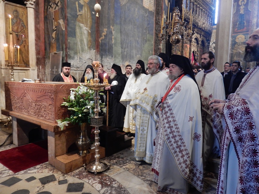 Он је подсетио на живот и страдање Светог Краља рекавши да је ,,Сваки камен овог храма заливен његовим сузама и молитвом“ и да је манастир вековима опстајао његовом молитвом, а данас у окружењу манастира нема сународника Светога Краља јер су протерани, јер су морали да напусте ове просторе како би сачували своје животе.