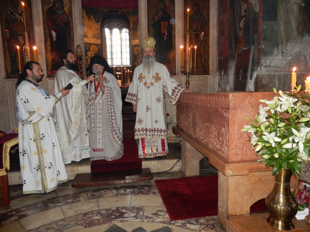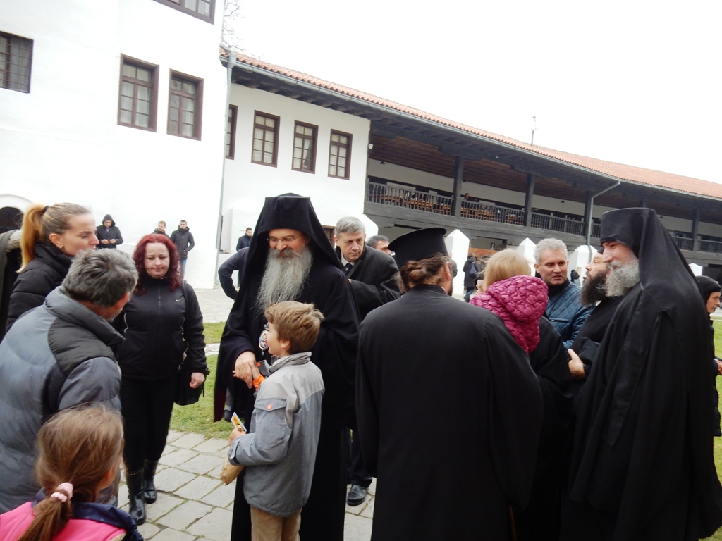 У празничној беседи владика је поздравио и великог добротвора Француза Арно Гујона који је дошао на манастирску славу, а са посебним поштовањем се захвалио и архимандриту Нектарију Серфесу из Америке који ових дана борави на Косову и Метохији и помаже српском народу и манастирима. Он је како је рекао владика пореклом Грк, али се ништа мање не осећа Србином, што по речима владике доказује да за нас Хришћане православне није важно којој нацији припадамо, већ колико у срцу носимо веру у Бога, у Христа.